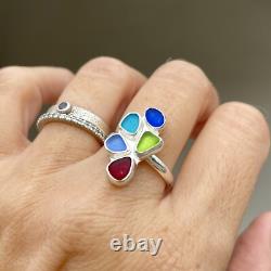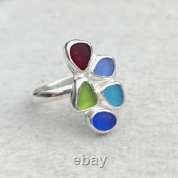 This listing is for a handcrafted genuine sea glass ring. It has been naturally tumbled by the ocean, sand and wave actions for many-many years. Every each piece is unique! 5 different color (red, cobalt, aqua, light blue and lime green) sea glass set in fine silver. Perfect for sea lovers or who just want a drop of Caribbean spirit..
