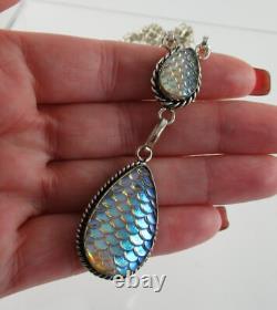 925 Sterling Silver Art Glass Mermaid Necklace Fish Scale Cut Design Y Drop