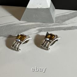 Alfred Philippe Trifari Citrine Glass Sterling Silver Earrings.