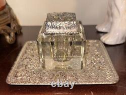 INKWELL Sterling Silver JE Caldwell Crystal Glass Reservoir Antique Plate 5.5