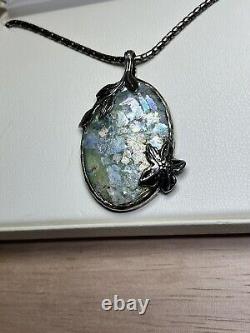 Israel Roman Glass Pendent with sterling silver chain 18inch 925. Retails $350