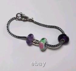 Trollbead LAA Sterling Silver Charm Bracelet Multi Bead Glass, + Two Amethyst 8